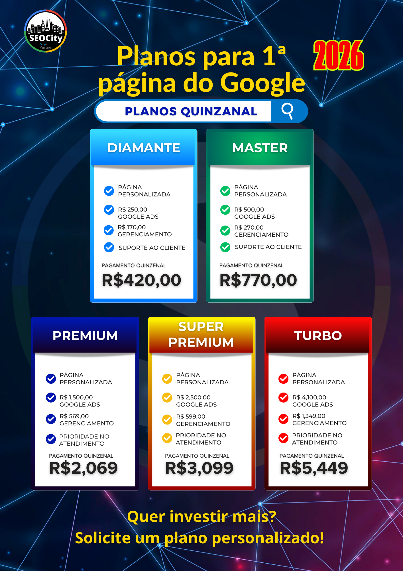 Patrocinamos o anúncio criado no Google Ads fazendo com que seu anúncio apareça nas primeiras posições da pesquisa no Google.